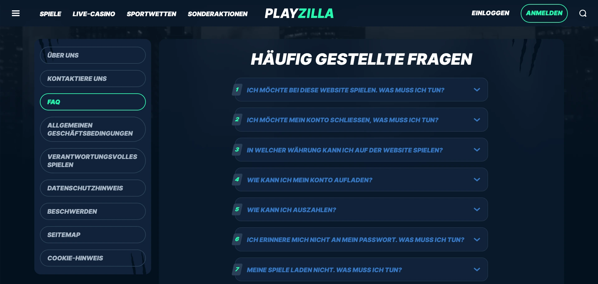 Rudimentäre FAQ-Struktur mit grundlegenden Informationen zu Kontoführung, Zahlungen und Bonusbedingungen bietet schnellen Zugriff auf häufig benötigte Informationen. Verbesserungspotenzial besteht bei technischen Problemlösungen und detaillierten Spielanleitungen, die aktuell unterrepräsentiert sind. Kategorische Gliederung erleichtert zwar die Orientierung, bleibt jedoch hinter umfassenderen Wissensdatenbanken etablierterer Anbieter zurück.
