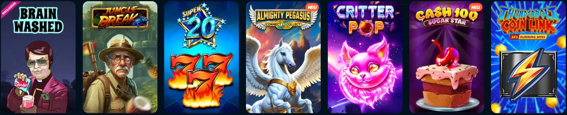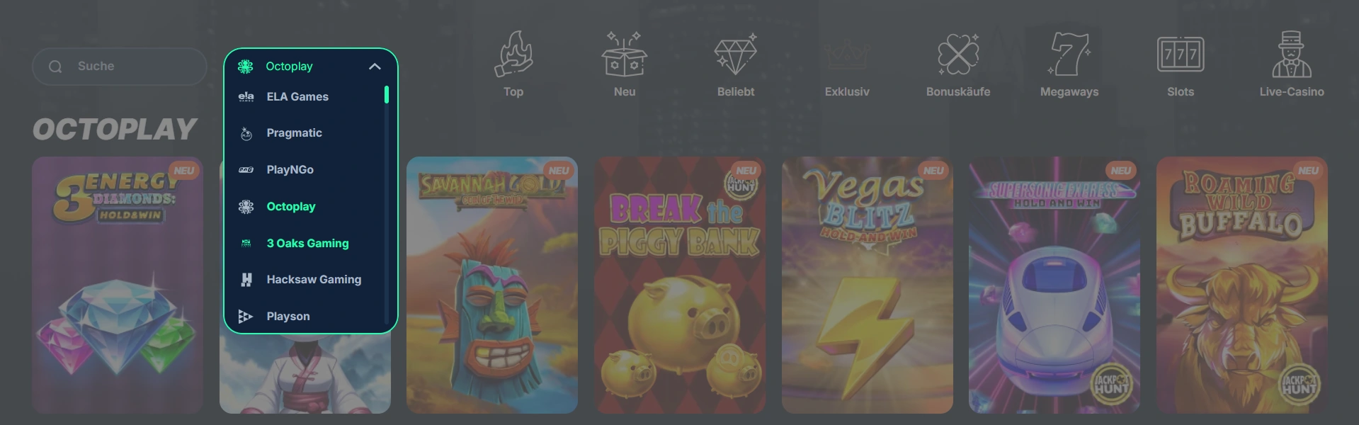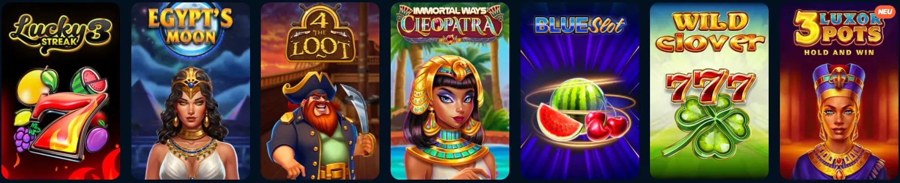 Auffällig ist das Fehlen von Greentube und iSoftBet im Portfolio, was für Fans der Novomatic-Spiele relevant sein könnte. Der «Exklusiv»-Bereich enthält spezielle Titel, die nicht überall verfügbar sind, darunter einige mit ungewöhnlichen Spielmechaniken.